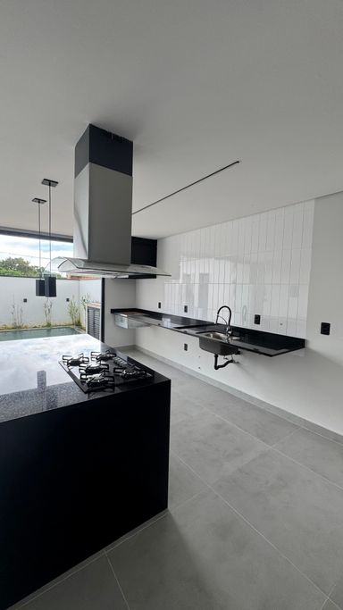 Cozinha gourmet com churrasqueira, Cooktop e coifa;